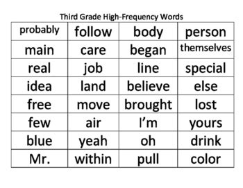 Web third grade sight word list, sight word list, 3rd grade high frequency words. Though dolch wrote his list long before. Web third 100 high frequency words gladstone elementary school page 1 of 1 201.