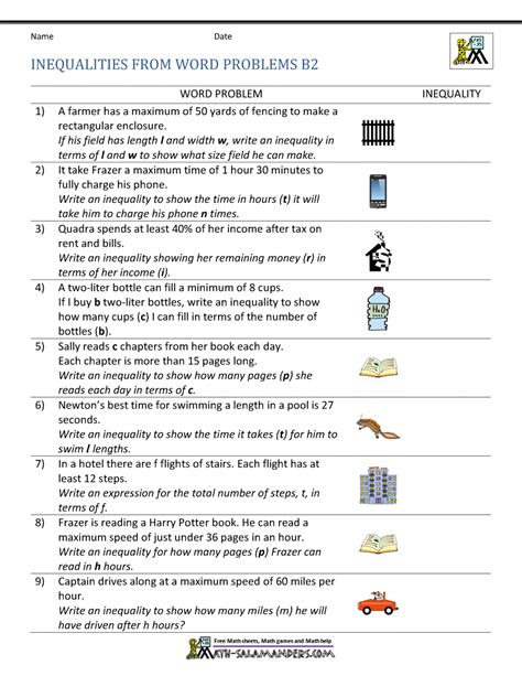 If the admission to the fair is $4 and the rides cost $1.50 each, what is the greatest number of. Web displaying 8 worksheets for inequalities word problems. Web this worksheet give students practice with writing and solving inequalities.